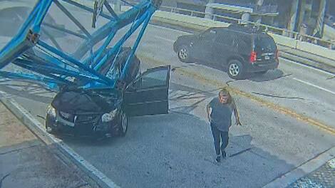 Olaya ilişkin CNN’in güvenlik kamerası tarafından çekilen yeni videosunda iskelenin bir bölümünün doğrudan bir arabanın üzerine düştüğü görülüyor.